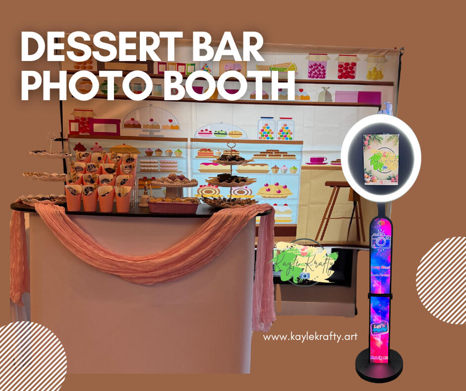 Includes: iPad Photo Booth, Backdrop, Props, Dessert Counter, and Barstool